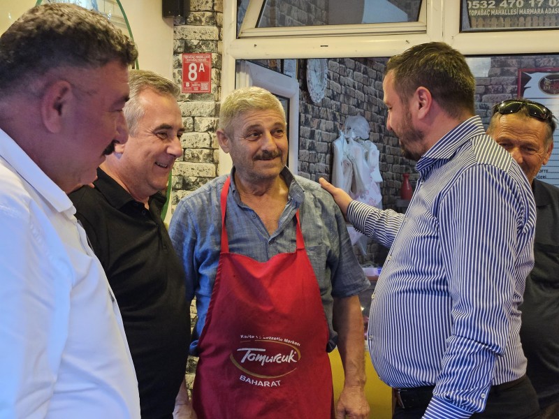 Marmara Adası Merkez Mahallesi’nde de çarşı esnafı ziyaret edildi. Başkan Aydemir burada, “Esnafımız ilçemizin can damarıdır. Onların yanında olmaya devam edeceğiz,” mesajını verdi. AK Parti teşkilatının gönül almaya, çözüm üretmeye kararlı olduğu bir kez daha gösterildi.