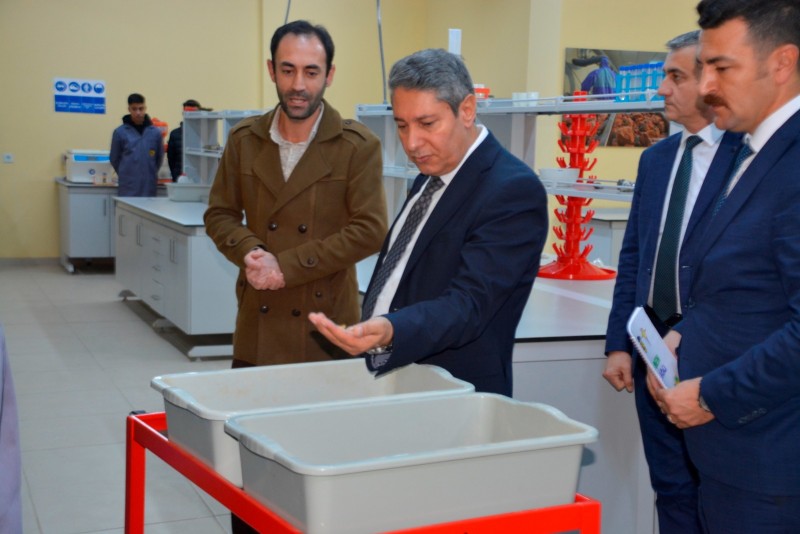 Ziyaret çerçevesinde; Milli Eğitim Bakanlığı tarafından Türkiye'nin 51. AR-GE Merkezi olarak oluşturulan okulda imalatı yapılan kaya tuzu, katkısız sofra tuzu, bentonit ile hazırlanan nem alıcı tabletlerle poşet imalatı, VR gözlükleriyle simülasyon ortamı tasarımı hakkında öğrenci ve öğretmenler tarafından Tatlı’ya bilgi verildi.