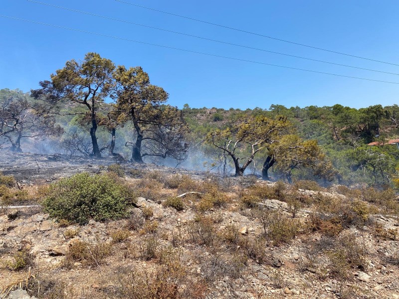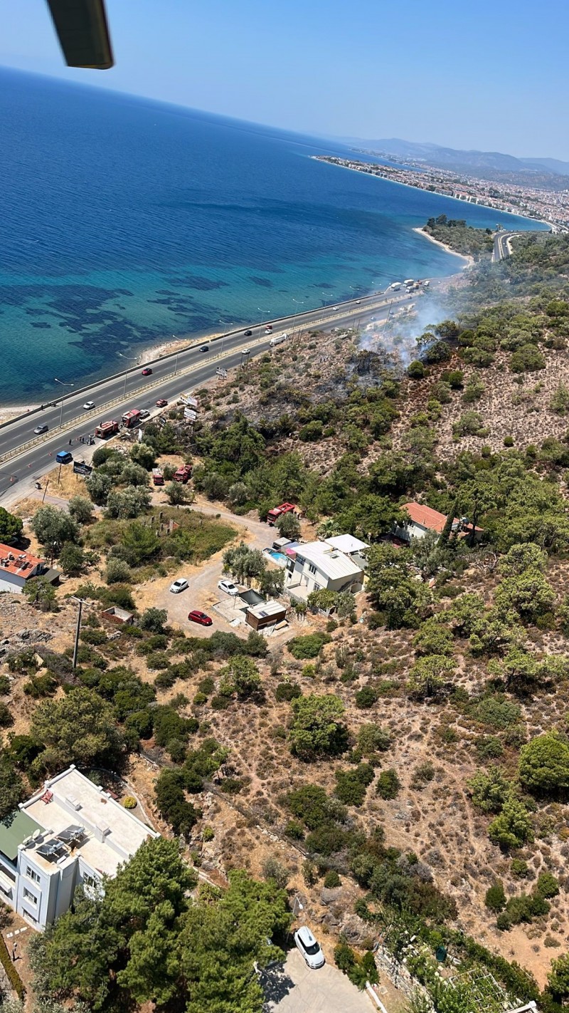 Balıkesir'in Edremit ilçesindeki önemli turizm merkezi Altınoluk'ta makilik alanda çıkan orman yangını havadan ve karadan müdahale ile kısa sürede söndürüldü.