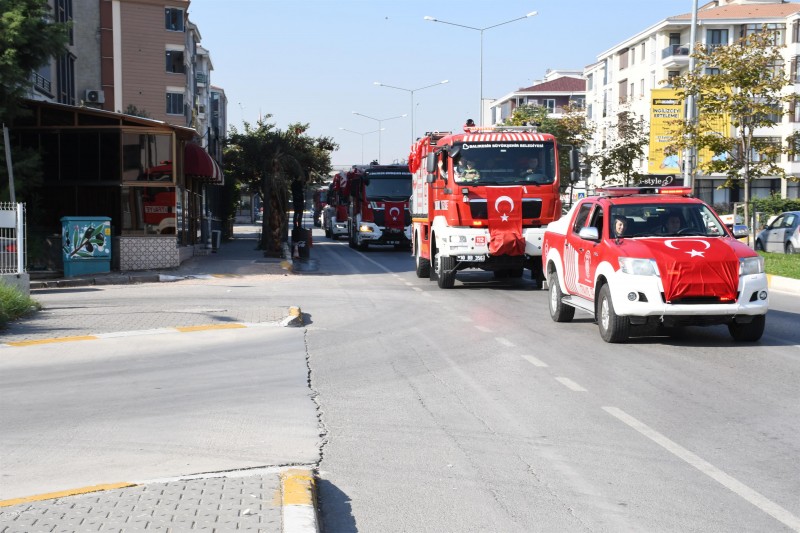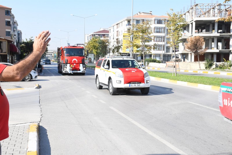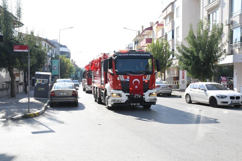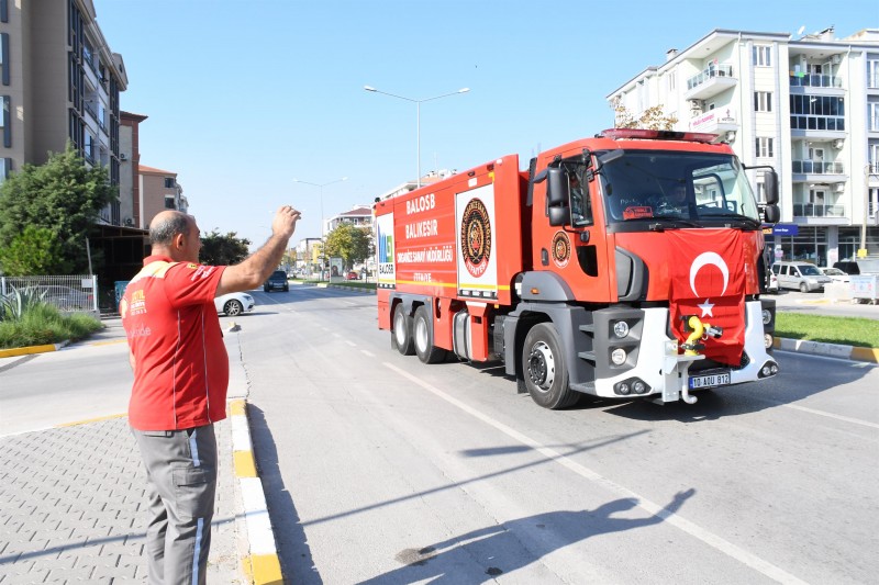 20 ilçede, 44 istasyon, 699 personel ve 172 araç ile gece gündüz demeden çalışmalarını sürdüren Balıkesir İtfaiye Teşkilatı, Türk bayraklarıyla süslenen itfaiye araçlarıyla kısa bir şehir turu attı. Caddedeki geçişi izleyen vatandaşlar, itfaiye personellerini selamladı.