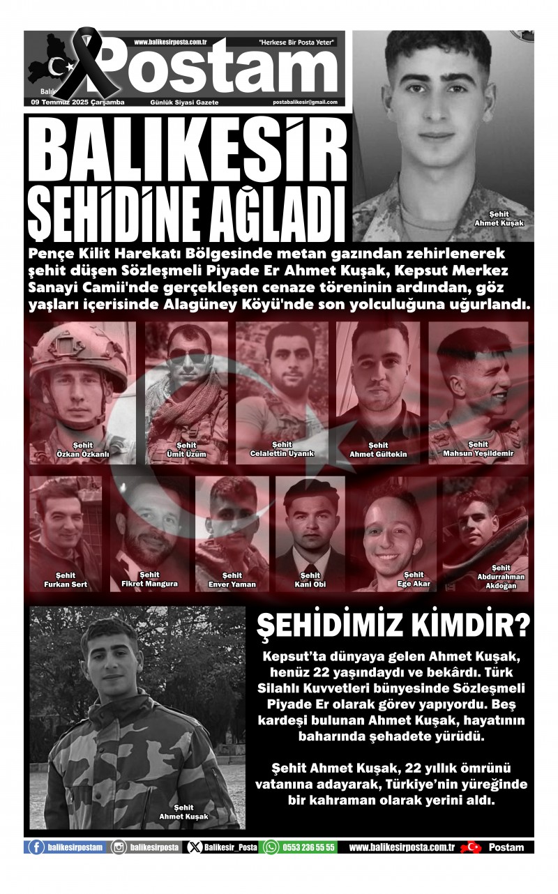 Pençe Kilit Harekatı Bölgesinde metan gazından zehirlenerek şehit düşen Sözleşmeli Piyade Er Ahmet Kuşak, Kepsut Merkez Sanayi Camii'nde gerçekleşen cenaze töreninin ardından, göz yaşları içerisinde Alagüney Köyü'nde son yolculuğuna uğurlandı.