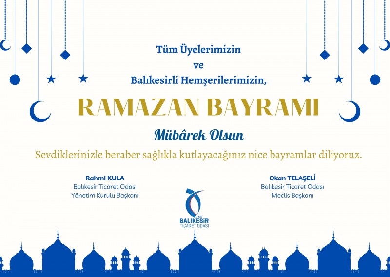 Balıkesir Ticaret Odası Başkanı Rahmi Kula ve Balıkesir Ticaret Odası Meclis Başkanı Okan Telaşeli, Ramazan Bayramı münasebetiyle Balıkesirli vatandaşların ve esnafların bayramını kutladı.