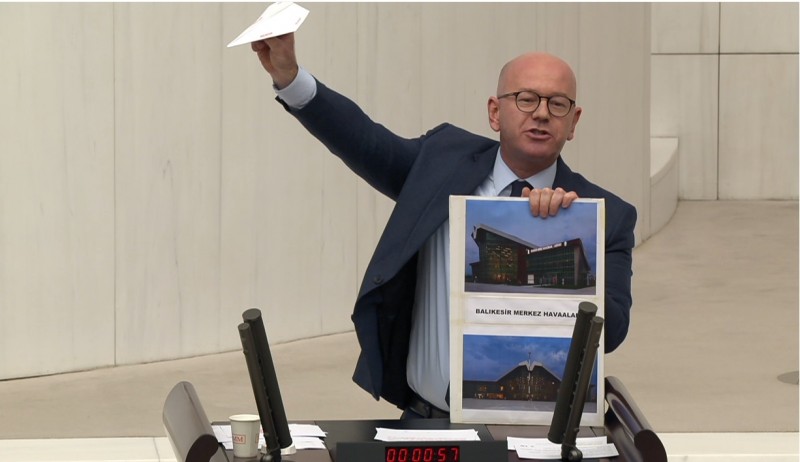 CHP Balıkesir Milletvekili Serkan Sarı, TBMM Genel Kurulu’nda “Balıkesir TK 10” adını verdiği kağıt uçağı uçurdu. Sarı "Balıkesir Havaalanı’nın gördüğü tek uçak bu! Bütçem bu kadar; alın, işte bu havaalanın gördüğü uçak budur. Bu sizin yüz karanızdır!"