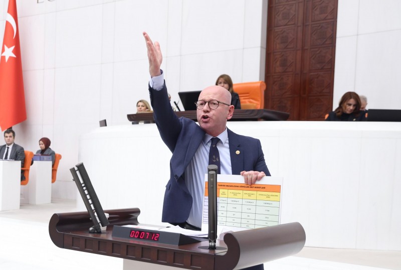 Halkın yaşadığı geçim sıkıntısına dikkat çeken Sarı, TÜİK ve ENAG verilerini hatırlattı. Konuşmasında ekonomik verileri tablolarla ortaya koyan CHP’li Serkan Sarı “Bir gerçeği sizin yüzünüze vurmak istiyorum: Millet aç, millet aç! Bugün nüfusun yüzde 38’i yoksul, yüzde 60’ı açlık sınırının altında yaşıyor. TÜİK’e göre enflasyon 47, ENAG’a göre 87 ama siz işçiye, emekçiye ne layık görüyorsunuz? Yüzde 20 ila 25 arasında bir zammı layık görüyorsunuz. Utanın, utanın artık bu emekçiden! Sizin Diyanet İşleri Başkanınız bir Audi sevdası tutmuş, gidiyor; vay memleketimin hâline! Vay sizlerin düşürdüğü bu hale!” diye konuştu.