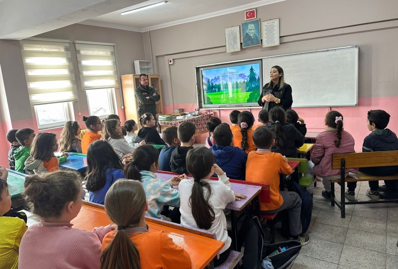 Balıkesir Orman Bölge Müdürlüğü, Orman İşletme Müdürlüğü bünyesinde görevli Gelendost Orman İşletme Şefi Özge Can Alpöz tarafından, Balıkesir’in Kepsut ilçesindeki Hacer Özer İlkokulu 3. ve 4. sınıf öğrencilerine, ormancılık mesleği, ormanların ekosistem içerisindeki ve hayatımızdaki önemi ile ormanda yaşayan yaban hayatı hakkında bilgiler paylaşıldı.