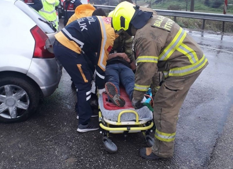 Bandırma - Bursa karayolu 12. kilometresinde tek taraflı trafik kazası meydana geldi. E. G. idaresindeki 02 DZ 204 plakalı otomobil yağış nedeniyle kontrolden çıktı. Direksiyon hakimiyetini kaybeden sürücü kaza yaparak aracın içinde sıkıştı. Bandırma İtfaiye ekipleri tarafından sıkıştığı yerden yaralı olarak çıkarılan E. G. sağlık görevlilerinin ilk müdahalesinin ardından, Bandırma Eğitim ve Araştırma hastanesine kaldırılarak tedavi altına alındı. (İHA)