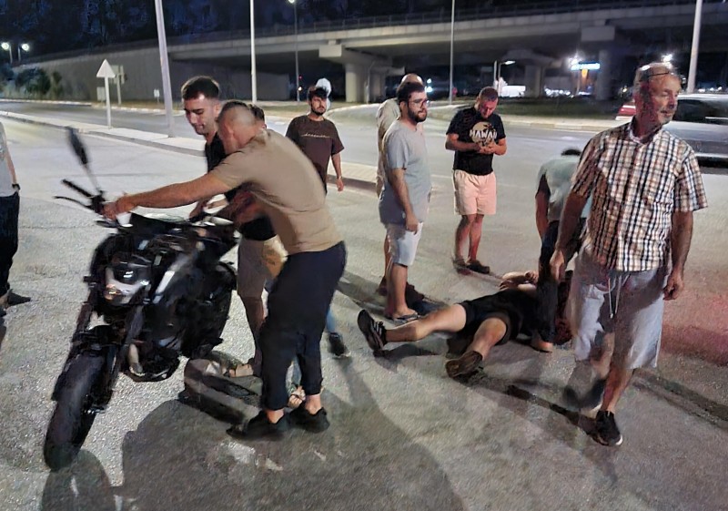 Balıkesir'in Bandırma ilçesinde iddiaya göre yan yoldan çıkan bir aracın sıkıştırması sebebiyle düşen motosiklet sürücüsü yaralandı.