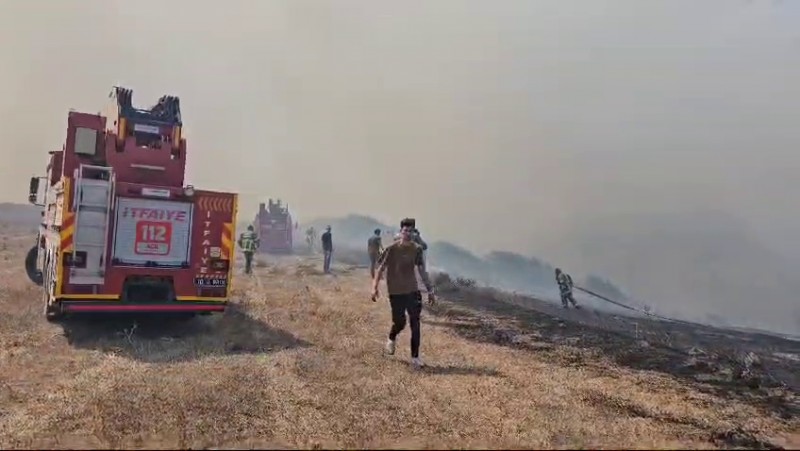 Balıkesir'in Bandırma ilçesinde otluk alanda yangın çıktı. Rüzgarın etkisiyle kısa sürede büyüyen yangın, ekipler tarafından söndürülmeye çalışıyor.