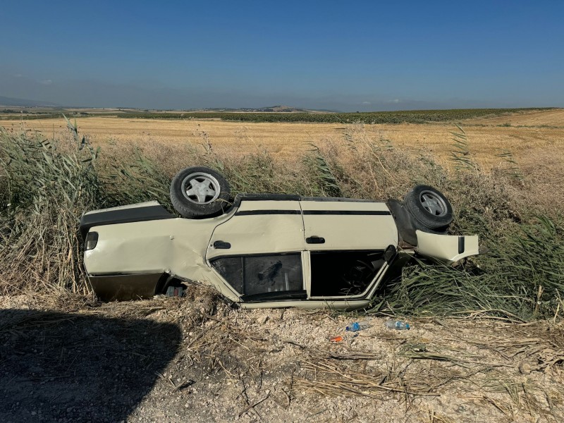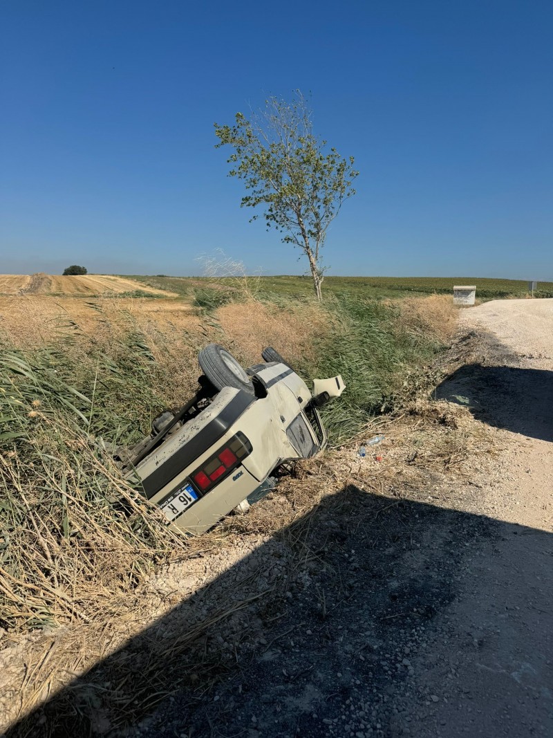 Balıkesir'in Bandırma ilçesinde direksiyon hakimiyeti kaybedilen otomobil yolun sağına devrildi, sürücü yaralandı.