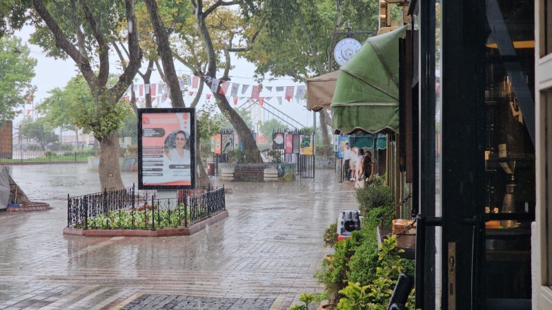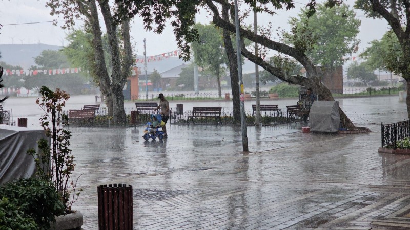 Günlerdir sıcak havanın etkisinde olan Bandırma, öğle saatlerinde etkili olan sağanak yağışla serinledi.