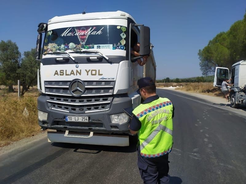 Balıkesir İl Jandarma Komutanlığı Trafik Jandarmasınca, sorumluluk alanımızda bulunan karayollarında ''yük ve yolcu taşıyan araç ve şoförlerin'' trafik düzeni ve güvenliğinin sağlanmasına yönelik olarak trafik kural, yasaklama ve kısıtlamalarına uygun şekilde araç kullanmaya yöneltmek ve kaza sonucunda meydana gelen can kayıplarını en aza indirmek maksadıyla, 05 Ağustos 2023 tarihinde "Yük ve Yolcu Taşıyan Araç ve Şoförlerin Özel Denetim” faaliyeti icra edilmiştir.