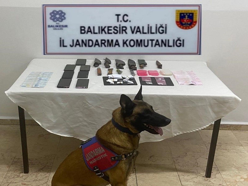 Balıkesir İl Jandarma Komutanlığınca, 25 Eylül – 01 Ekim 2023 tarihleri arasında kaçakçılık ve organize suç olaylarına yönelik yapılan istihbarı çalışmalar neticesinde; mülki sınırlarımız içerisinde bulunan (7) (Altıeylül, Ayvalık, Burhaniye, Edremit, Gömeç, Karesi, Susurluk) ilçede meydana gelen (16) kaçakçılık ve organize suç olayına karışan (25) şüpheliye ait ev ve eklentileri ile kullanmış oldukları araçlara yönelik operasyonel faaliyet sonucu; (511) gram kubar esrar, (165) gram metamfetamin, (55) gram afgan sakızı, (14) adet sentetik uyuşturucu hap, (5) gram toz esrar, (1) adet hassas terazi, (1) adet esrar öğütme aparatı, (8) adet uyuşturucu kullanma aparatı (payp), (3) adet tabanca, (2) adet av tüfeği, (10) adet bıçak, (14) adet cep telefonu ve (40.500 TL) suçtan elde edilen gelir ele geçirilmiştir.