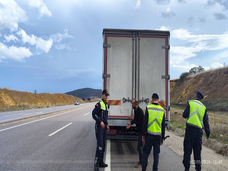 Balıkesir İl Jandarma Komutanlığı Trafik Jandarmasınca, sorumluluk alanımızda bulunan karayollarında ''Yük Taşıyan Araç ve Şoförlerin'' trafik düzeni ve güvenliğinin sağlanmasına yönelik olarak trafik kural, yasaklama ve kısıtlamalarına uygun şekilde araç kullanmaya yöneltmek ve yük taşımacılığı yapan araçların/römorkların altına girmeyi önleyecek arka ve yan koruma çerçevelerinin, geceleri görünürlüğü ve fark edilmeyi arttırıcı arka işaret ve reflektör kontrollerini yapmak maksadıyla, 02 Kasım 2023 tarihinde "Yük Taşıyan Araç ve Yan Koruma Çerçevelerinin Özel Denetimi” faaliyeti icra edilmiştir.