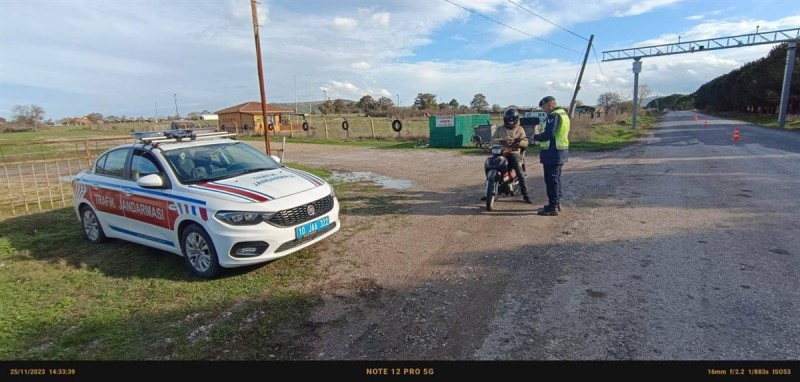 Balıkesir İl Jandarma Komutanlığı Trafik Jandarmasınca, sorumluluk alanımızda bulunan karayollarında motosiklet sürücülerinin trafik kural, yasaklama ve kısıtlamalarına uygun şekilde araç kullanmaya yöneltmek, motosikletlerin karıştığı trafik kazalarını önlemek maksadıyla, 23-24-25 Kasım 2023 tarihlerinde (3) günlük "Motosiklet Özel Denetim” faaliyeti icra edilmiştir.