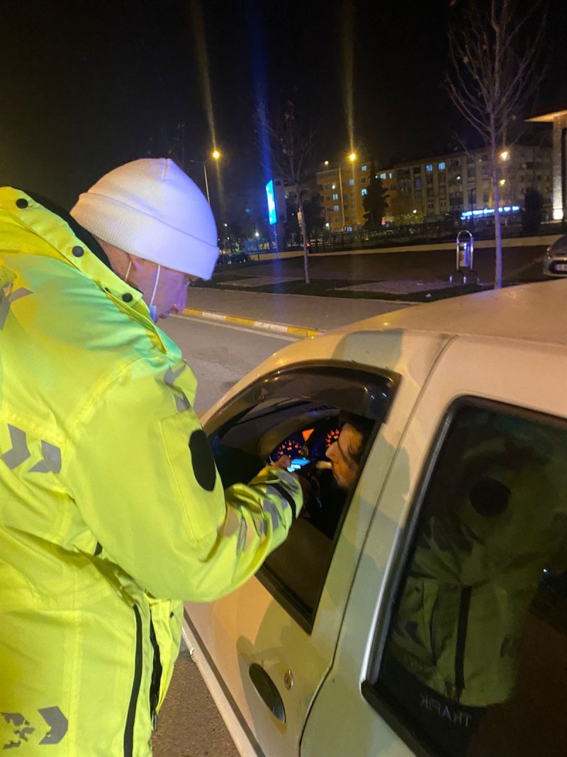 2 sürücüye, 2918 Sayılı Karayolları Trafik Kanunu'nun 48/5 maddesi gereğince alkollü araç kullanmaktan işlem yapılarak sürücü belgelerine el konulmuştur.