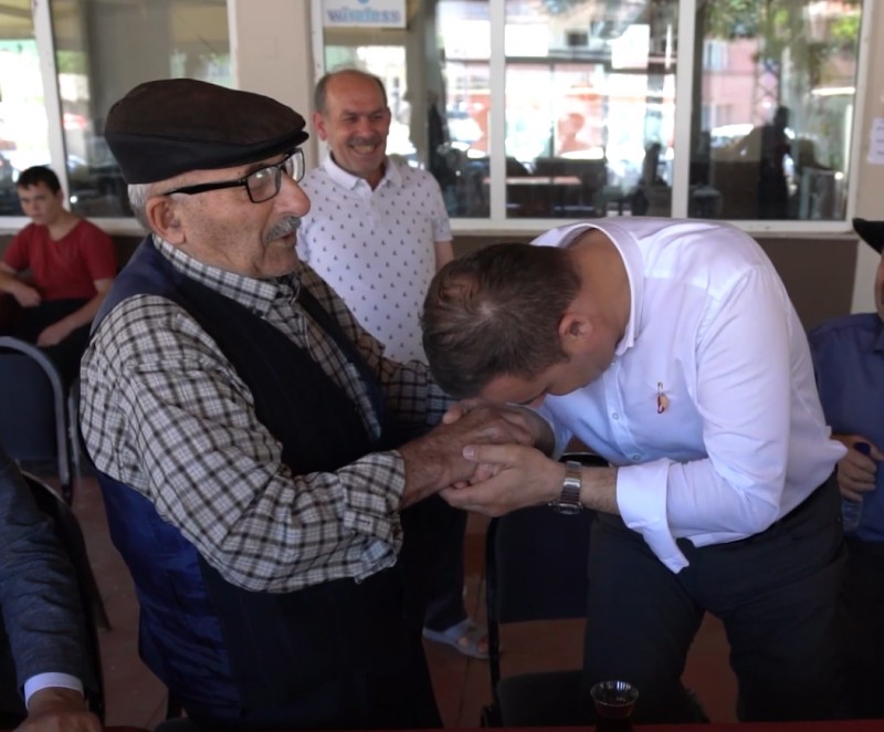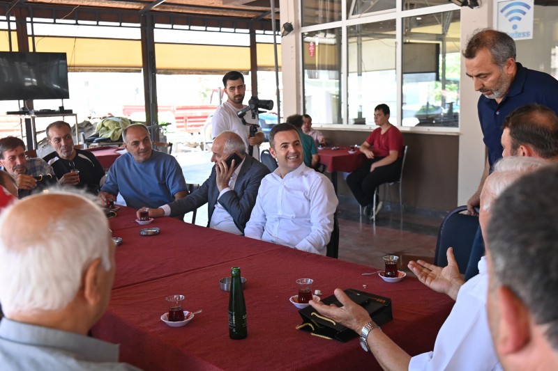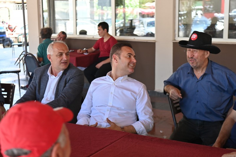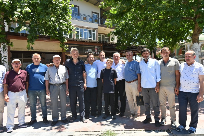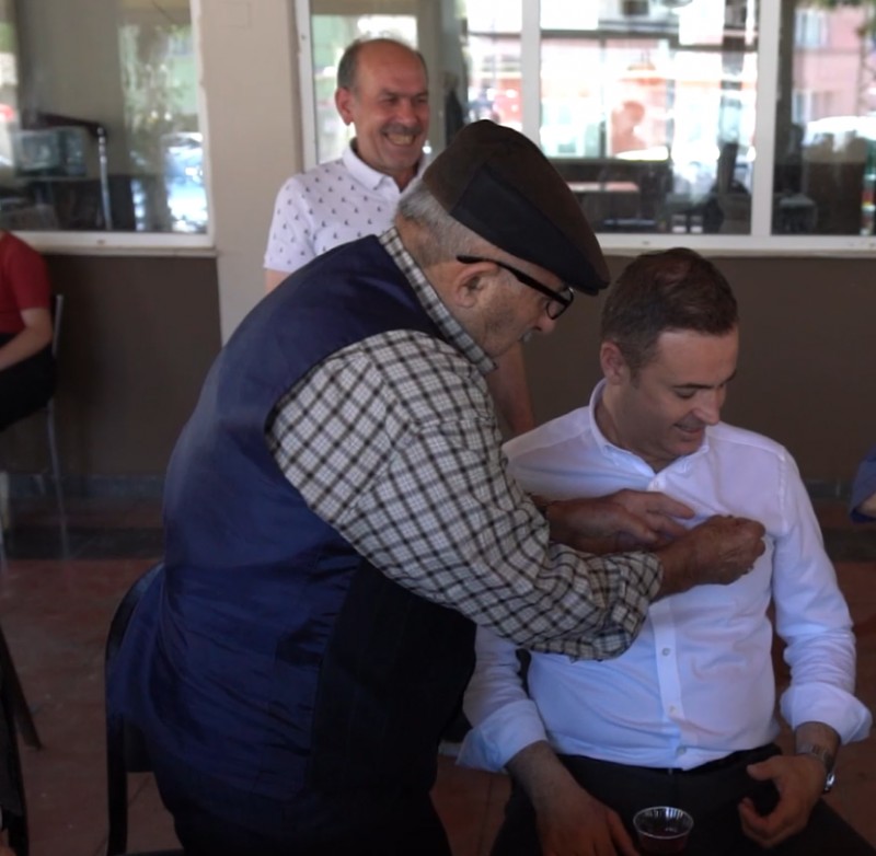 Kahvehanede vatandaşlarla çay içip sohbet eden Başkan Ahmet Akın'a, bir köy sakini hem Büyükşehir Belediye Başkanlığı için hayırlı olsun hem de bayram hediyesi olarak altın taktı. Başkan Ahmet Akın da teşekkür ederek büyüğünün elini öptü.