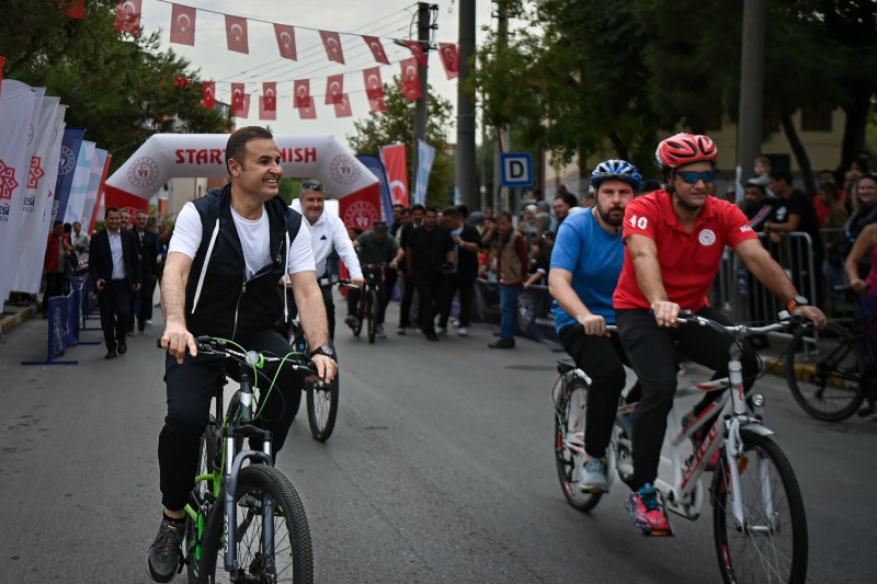 Balıkesir Büyükşehir Belediye Başkanı Ahmet Akın, Amatör Spor Haftası nedeniyle her yıl düzenlenen Geleneksel Adnan Menderes Mahallesi Bisiklet Yarışması’nda çocuklarla birlikte pedal çevirdi.
