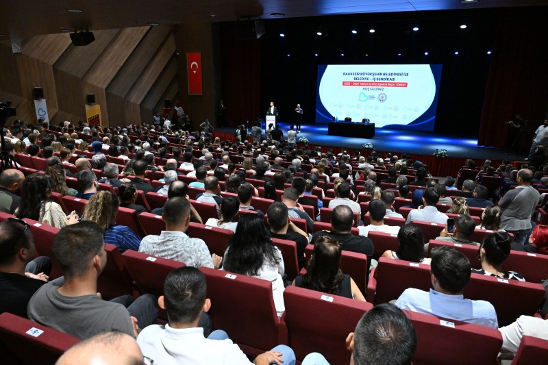 Toplu iş sözleşmesi için sendikayla uzun süredir görüşmeler gerçekleştirdiklerinin bilgisini veren Akın "Bu kapsamda mesai arkadaşlarımızın çalışma şartlarında birtakım iyileştirmeler sağladık. Emin olun önceliğimiz her zaman sizlerin huzur ve refahı oldu. Balıkesir’imizi yönetirken uyguladığımız halkçı modeli, hiçbir çalışma arkadaşımızı mağdur etmeden Balıkesir Büyükşehir Belediyemizde de uyguladık. Bu doğrultuda; sözleşme süremizi iki yıl olarak belirledik. Yevmiyeleri, ilk 6 ay için enflasyon artı 4 puan refah payı oranında ve sonraki 6 aylar için ise enflasyon artı 2 puan refah payı olacak şekilde artırdık. Sendikal ikramiyeyi toplamda 60 yevmiye olarak belirledik. Ramazan ve Kurban Bayramları öncesinde otuzar yevmiye olarak ödeme yapacağız" ifadelerini kullandı.