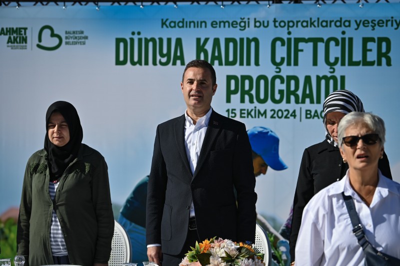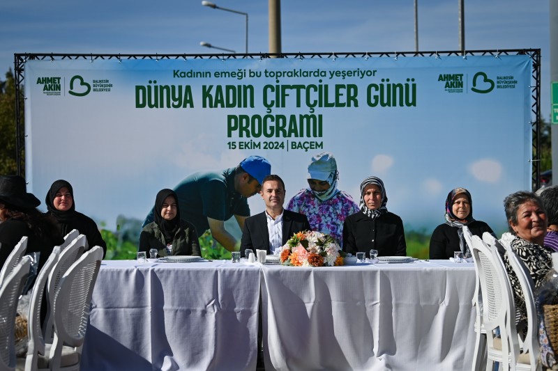 Toprağın bereket olduğunu ve bereketi artıranın da kadınlar olduğunu vurgulayarak konuşmasına başlayan Balıkesir Büyükşehir Belediye Başkanı Ahmet Akın “Tarlada, bahçede, ağılda çalışan en çok emek veren sizlersiniz. Üretiyorsunuz; elinizden geldiğince topraktaki ürünle katma değer yaratmaya çalışıyorsunuz. Salçasıyla, yoğurduyla, eriştesiyle evin bereketini artıran da kadınlar. Ülkemizde istihdamda olan kadınların yarısı tarım sektöründe. Tarımda yoğun emek gerektiren işleri kadınlar üstleniyor. Buna rağmen ülkemiz genelinde kadın çiftçilerimizin yüzde 90’ından fazlası sigortasız ve herhangi bir güvencesi olmadan çalışıyor. Küçük ve orta ölçekli işletmelerde kadınlar aile içinde ücretsiz emek veren konumdalar. Bu nedenle kadının emeği çok yerde görünmüyor. Hâlbuki gıdanın topraktan sofraya kadar ulaşması sürecinde, en meşakkatli işleri üstlenen kadınlar. Üstelik bir yandan evle, çocukla, ailenin büyükleriyle ilgilenmeye devam ederken büyük de üzerinize biniyor.” dedi.