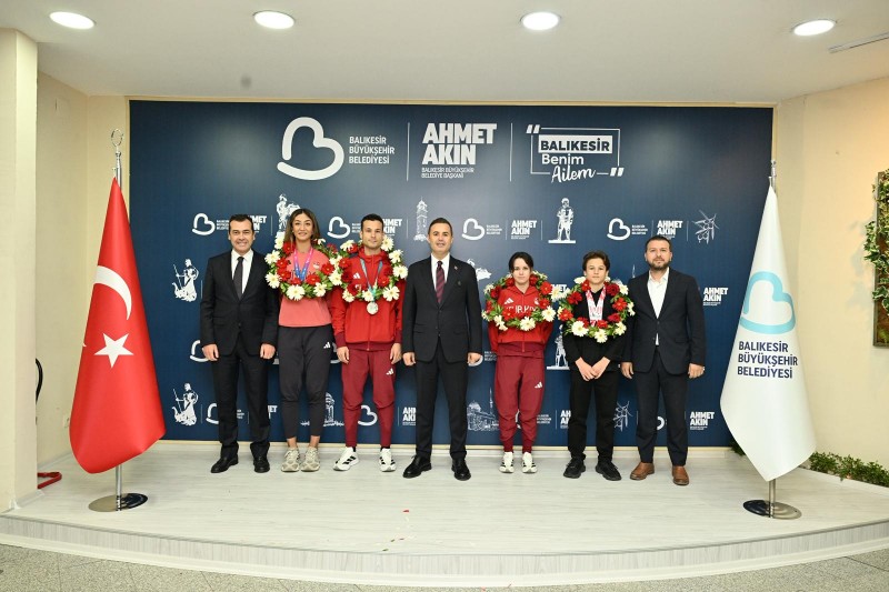 Büyükşehir Belediye Başkanı Ahmet Akın, çeşitli branşlarda derece alarak Balıkesir’in adını dünyaya duyuran milli sporcuları belediyede ağırlayarak tebrik etti.