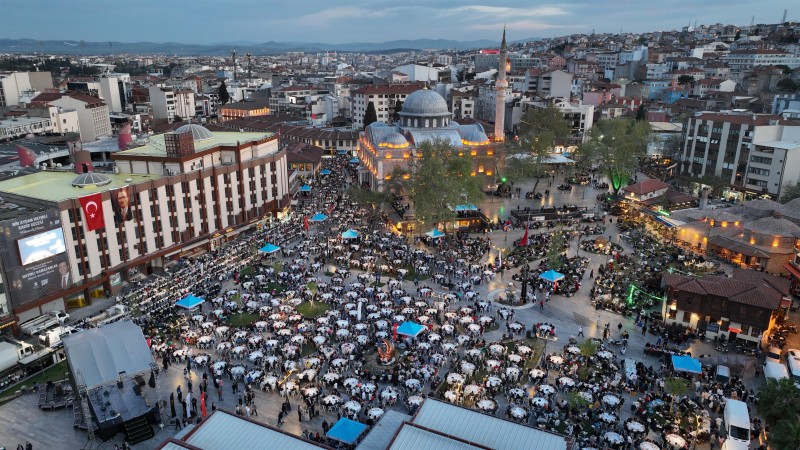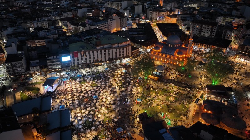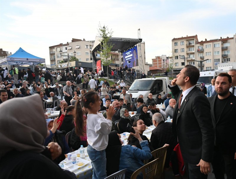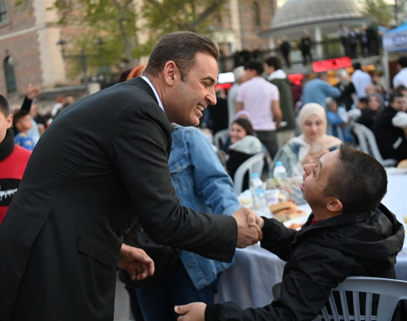 Balıkesir’de on binler, Büyükşehir Belediye Başkanı Ahmet Akın’ın Zağnos Paşa Camisi Meydanı’nda düzenlediği iftar yemeği ve Kadir Gecesi programında buluştu. Görevi devralmasının ardından hızlı bir tempoyla hem personelini hem de hemşehrilerini ziyaret ederek teşekkür eden Başkan Ahmet Akın, Ramazan ayının incisi Kadir Gecesi’nde en sevdikleriyle ‘Balıkesir Ailesi’ ile iftar sofrasında bir araya geldi. 7’den 77’ye meydanı dolduran vatandaşlar, Başkan Ahmet Akın’a büyük ilgi gösterdi. Hiçbir vatandaşı kırmadan isteyen herkesle fotoğraf çekilen, sohbet eden Başkan Ahmet Akın da tüm hemşehrileriyle yakından ilgilendi.