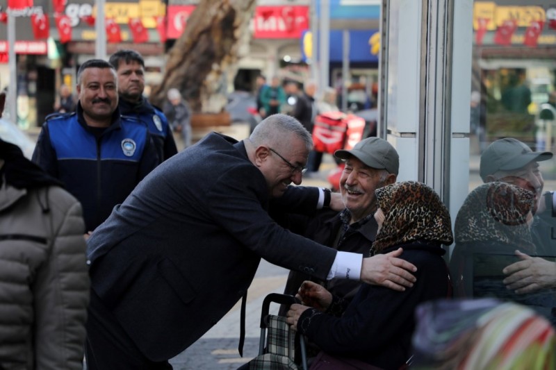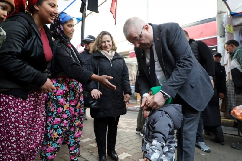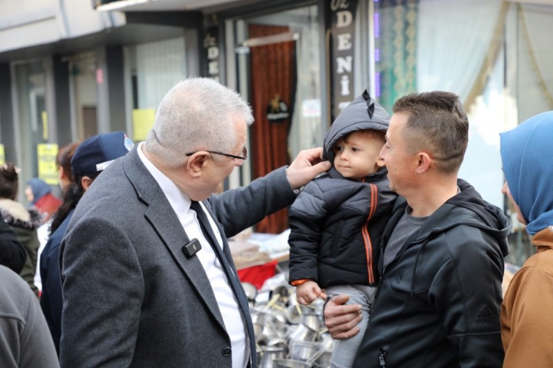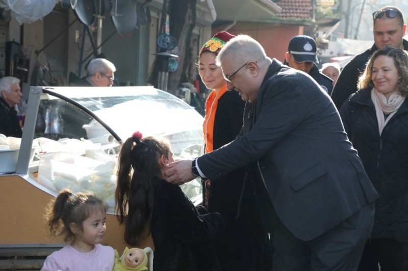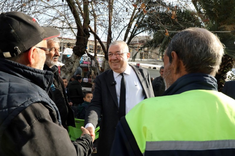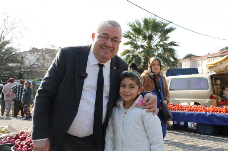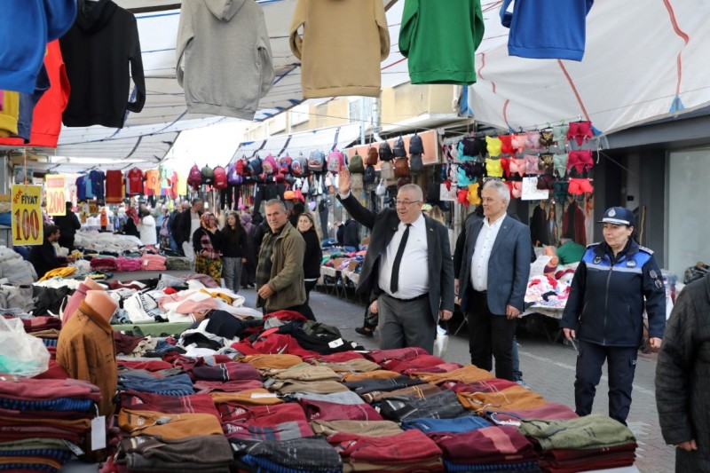 Edremit merkezde ilçenin en büyük halk pazarını ziyaret eden Edremit Belediye Başkanı Mehmet Ertaş esnafla buluştu, hayırlı işler diledi.