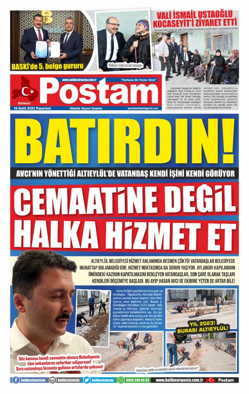 Konu ile ilgili gazetemize konuşan vatandaşlar, "Ağustos'ta Altıeylül Belediyesine yapılan kazıyı kapatın diye bildiriyoruz ama ilgilenen yok. Burası 2. Gündoğan mahallesi 3123 sokak. Yağmurda su birikiyor, giderler tıkanıyor, çocuklarımız bebeklerimiz var. Zor geçiliyor dedik ama sonuç yok. Biz de kendimiz yapmaya başladık. Altıeylül belediyesi vakit bulursa yardıma da bekleriz" diyerek tepkilerini dile getirdiler.(Haber Merkezi)