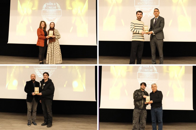 Balıkesir Üniversitesi Güzel Sanatlar Fakültesi tarafından düzenlenen BAUN AI Cinelab – Uluslararası Yapay Zeka Öğrenci Kısa Film Festivali kapsamında Atatürk Kongre ve Kültür Merkezinde gerçekleştirilen ödül töreninde, dereceye giren eserler sahipleriyle buluştu.