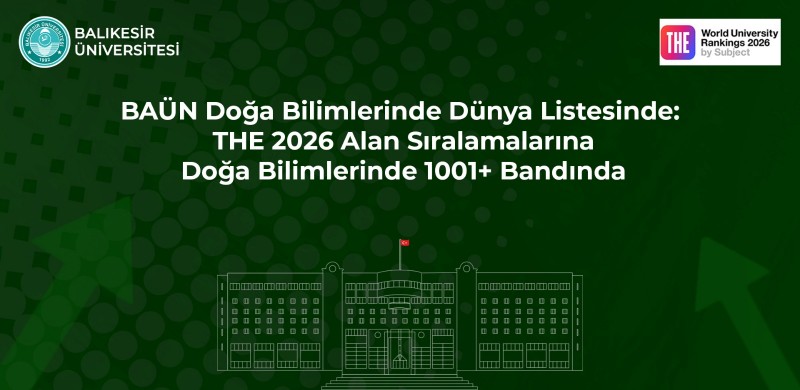Balıkesir Üniversitesi dünyadaki yaklaşık 50 bin üniversite arasından 115 ülke ve bölgeden seçilen yükseköğretim kurumlarının değerlendirildiği THE 2026 Dünya Üniversiteleri Sıralamasında BAÜN, alan sıralamalarında ilk kez yerini almasına rağmen; Doğa Bilimlerinde 1001+ bandında dünya sıralamasına girerek uluslararası alandaki başarısını ve görünürlüğünü bir kez daha ortaya koydu.