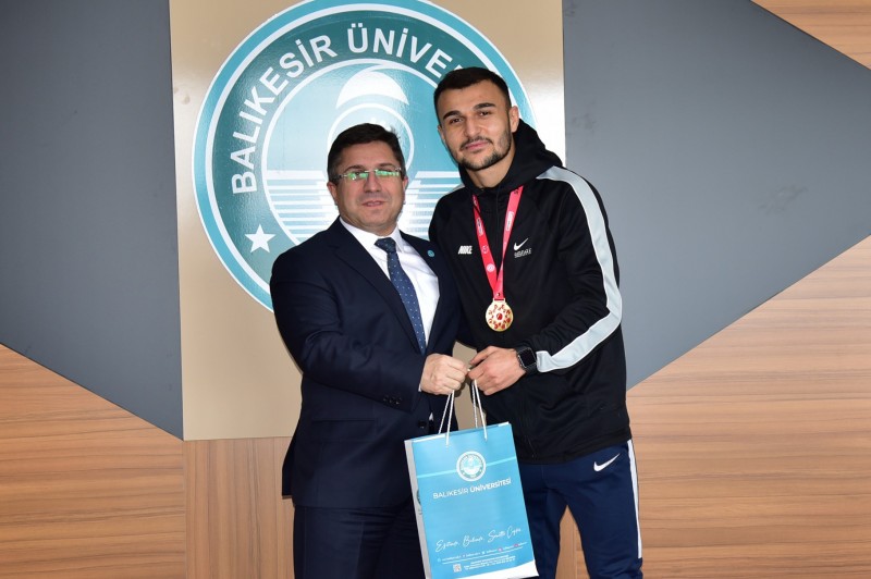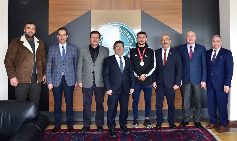 Rektör Yardımcıları Prof. Dr. Cevdet Avcıkurt, Prof. Dr. Murat Doğdubay ve Prof. Dr. Fatih Satıl’ın yanı sıra Spor Bilimleri Fakültesi Dekan V. Prof. Dr. Zekeriya Göktaş, Milli sporcu ve Rektör Spor Danışmanı Öğr. Gör. Ali Eren Demirezen ve Sağlık, Kültür ve Spor Daire Başkanı Mustafa Cem Hamzaoğlu’nun da yer aldığı ziyarette Rektör Prof. Dr. Yücel Oğurlu, konuklarına ziyaretlerinden dolayı teşekkür ederek bir kez daha tebrik ettiği milli sporcuya hediye takdim etti. Ulusal ve Uluslararası şampiyonalarda Balıkesir Üniversitesini başarıyla temsil eden sporcu Serdar Şayık da, kendisine gösterdiği destek ve ilgileri dolayısıyla Rektör Oğurlu’ya teşekkür etti.