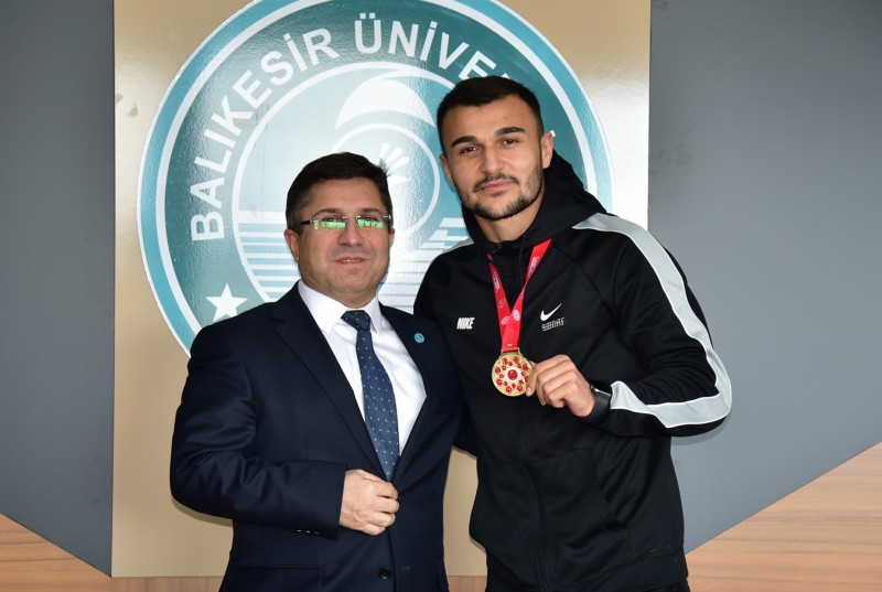 Antalya’da düzenlenen Süper Toto Türkiye Kick Boks Şampiyonasında 60 kilo K-1 kategorisinde Türkiye şampiyonu olan Balıkesir Üniversitesi (BAÜN Spor Bilimleri Fakültesi öğrencisi Serdar Şayık, Rektör Prof. Dr. Yücel Oğurlu’yu makamında ziyaret etti.