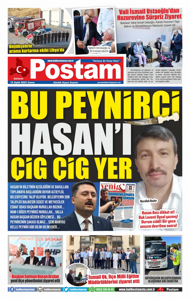Belediyenin son taliplisi Balıkesir Sebze ve Meyveciler Esnaf Odası Başkanı Nurullah Bozkır... Nam-ı diğer PEYNİRCİ NURULLAH... Valla Hasan Başgan bizden söylemesi... Bu Peynircinin şakası olmaz... Seni Manyas Kelle peyniri gibi dilim dilim eder... (Rabia Şevval Çakmak)