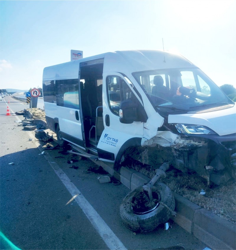 Bursa-Balıkesir karayolu üzerinde kavşaktan yola kontrolsüz çıkan otomobil servis aracı ile çarpıştı. Kazada 5 kişi yaralandı.