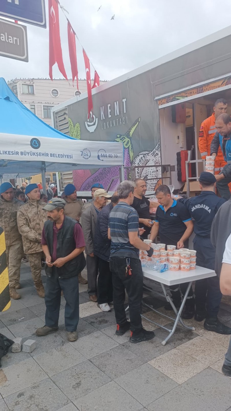 Depremzede vatandaşların beslenme ihtiyaçlarını karşılayabilmek için bölgeye gıda ve su gönderildi. Deprem anından itibaren OnOn Kafe Sındırgı Şubesi kesintisiz hizmet vermeye devam ediyor. 1 Kent Lokantası tırı, 1 çay servis aracı hızlı bir şekilde deprem bölgesine sevk edildi. Büyükşehir tarafından vatandaşlara sıcak yemek, çay kahve hizmeti sunulmaya devam ediyor. 7 bin 200 kişiye sıcak çorba, 1150 kişiye simit ve poğaça ikram edildi. 2 bin 800 yağmurluk, 2 bin battaniye dağıtılarak 15 tente çadır kurulumu yapıldı. Vatandaşlar tarafından Çağrı Merkezine gelen talepler anında değerlendirilirken Yakın Çözüm ekipleri depremzedelerin taleplerini ilgililere iletti.