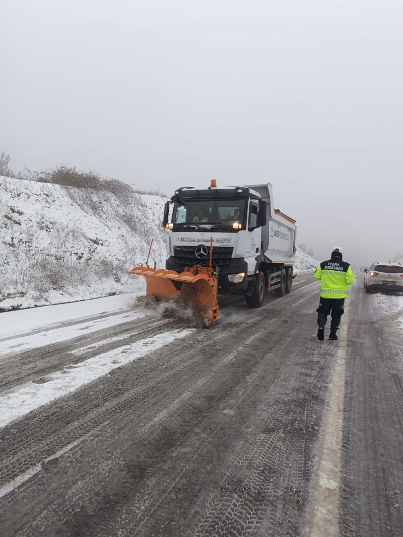 Balıkesir’de etkili olan kar yağışı nedeniyle teyakkuza geçen Balıkesir Büyükşehir Belediyesi Yol Yapım, Bakım ve Onarım Dairesi Başkanlığı ekipleri, il merkezi ve ilçelerde karla mücadele kapsamında kar küreme, tuzlama ve yol açma çalışmaları gerçekleştiriyor. 11 Pick-up, 11 greyder, 5 bekoloder, 4 loder ve 12 kamyondan oluşan araç filosu ile kritik noktalarda acil müdahale için hazır bekleyen ekipler, olası kazaların önüne geçmek için 7\24 nöbet esasına göre çalışıyor.