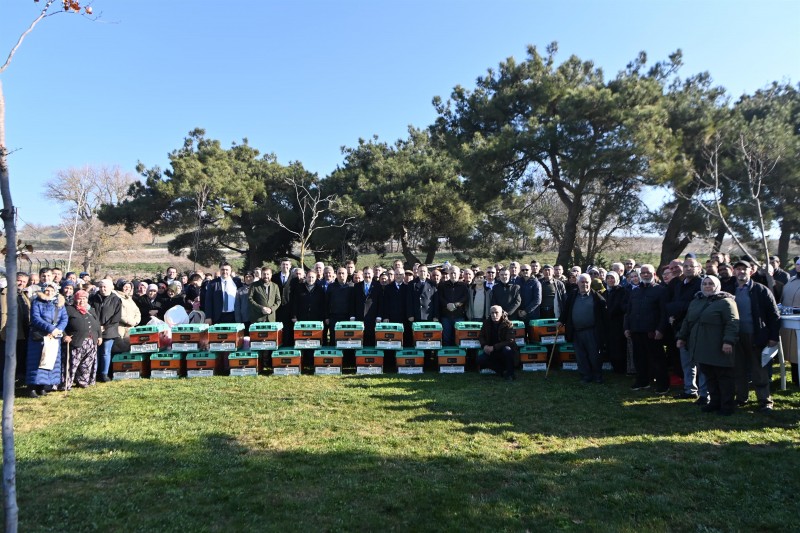 20 bin ana arı, 10 binden fazla kovan ve 2 adet fondan kek makinesini hibe alan arı yetiştiricileri, “Her konuda bize yardımcı olan Yücel Başkanımızı Allah başımızdan eksik etmesin, yolu ve bahtı açık olsun. Gözümüz de gönlümüz de Yücel başkanımızla” dedi.