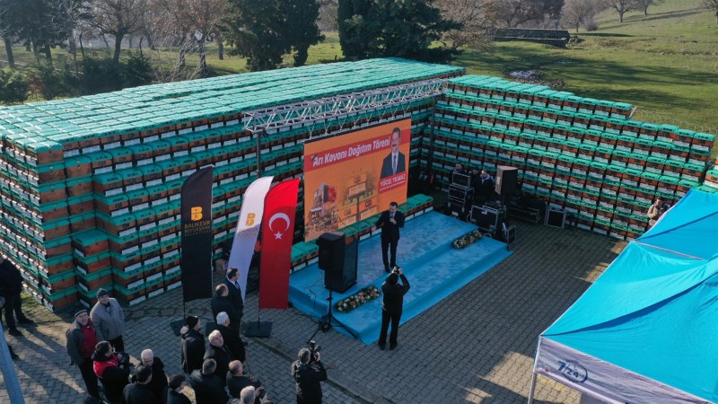 Balıkesir Büyükşehir Belediye Başkanı Yücel Yılmaz, 10 yıldır olduğu gibi üreticileri desteklemeye devam ediyor. 10 binden fazla kovan dağıtımı gerçekleştiren Başkan Yılmaz, Karesi İlçesi Kabakdere Mahallesi’nde bulunan Ana Arı ve Arı Ürünleri Üretim Tesisleri’nde gerçekleştirilen törenle üreticilere 5000 bin kovan hibe etti. Başkan Yılmaz’ın yatırımlarıyla ve vizyonuyla hayata geçirilen projeler sayesinde şehrin; balı, ekmeği, zeytini, peyniri, kuzusu, mandası Türkiye’de bir marka haline geldi, birçok üründe kalitesiyle uluslararası ödüller aldı. Son 2 yılda arı yetiştiricilerine 20 bin ana arı ve 10 bin kovan dağıtan, 2 adet fondan kek makinesi de kurarak arı yetiştiricilerinin kullanımına sunan Balıkesir Büyükşehir Belediyesi, 2014 arı işletmesinin tamamını destekleyerek Balıkesir’de yılda 3 bin ton bal üretim yapılmasını sağlıyor.
