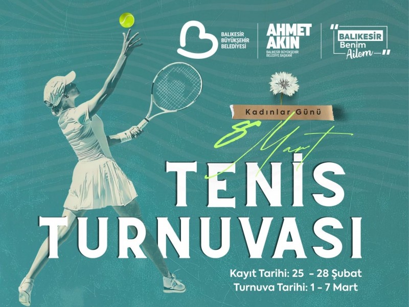 Balıkesir Büyükşehir Belediyesi tenisseverleri kortla buluşturuyor. 8 Mart Dünya Kadınlar Günü kapsamında tenis turnuvası düzenleyen Büyükşehir Belediyesi, birlik ve beraberlik için 18 yaş üstü bütün kadınları turnuvaya davet ediyor.