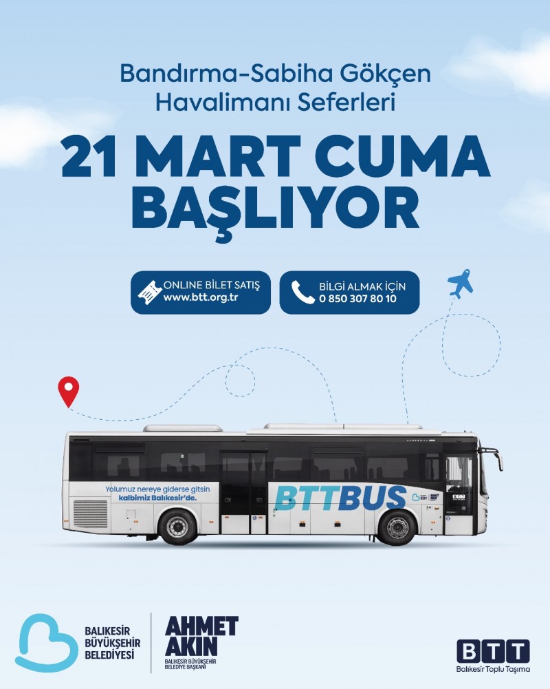 Kent ulaşımını daha rahat ve konforlu bir hale getirmek adına önemli çalışmalar yapan Balıkesir Büyükşehir Belediye Başkanı Ahmet Akın’ın girişimleriyle 21 Mart’tan itibaren Bandırma’dan İstanbul Sabiha Gökçen Havalimanı’na karşılıklı transfer hattı seferleri başlıyor.