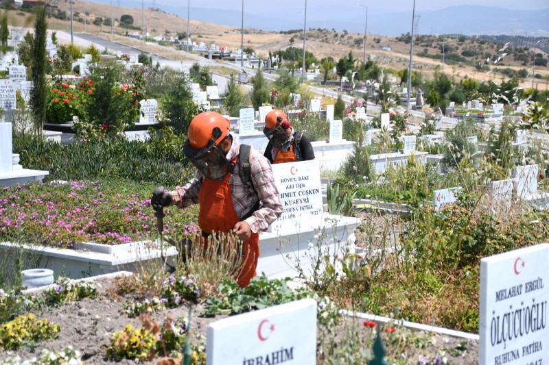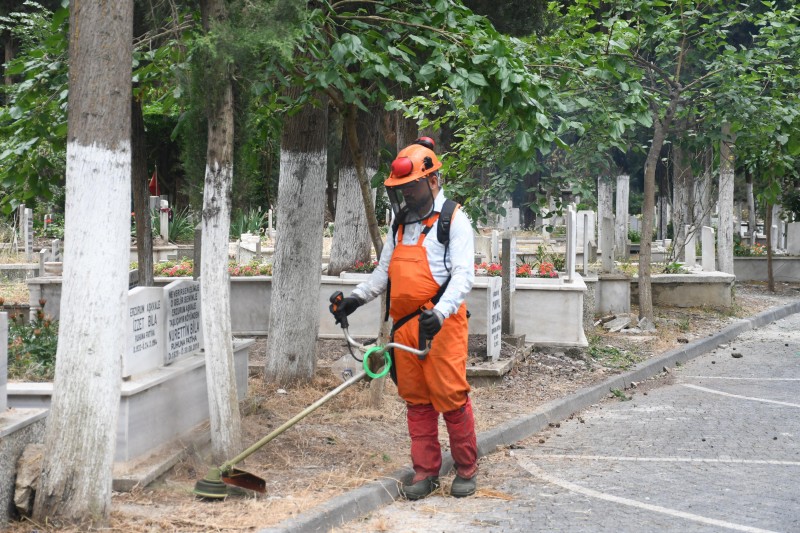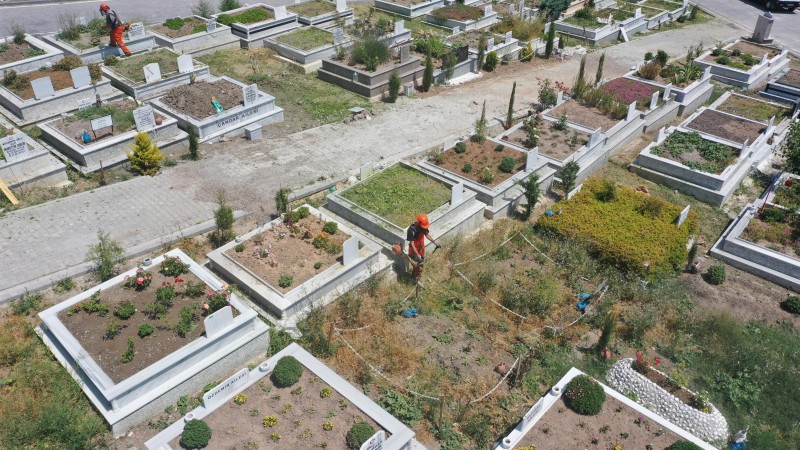 Balıkesir Büyükşehir Belediyesi, bayram öncesi yakınlarını ziyaret etmek isteyen vatandaşlar için mezarlıkları özenle temizliyor. Ot temizliğinin yapıldığı mezarlıklar aynı zamanda haşerelerden de arındırılarak vatandaşlar için güvenli hale getiriliyor.