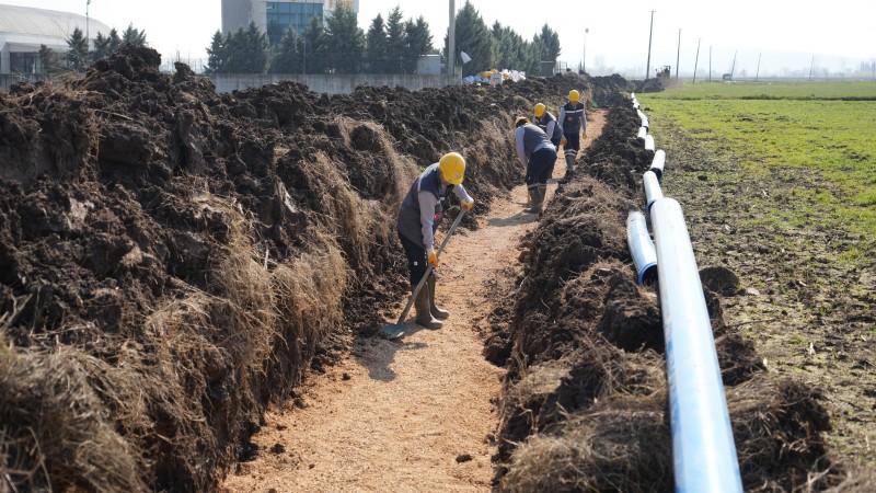 Yaklaşık 3 aylık zaman süreci içerisinde proje malzeme tedariki aşamasını bitirdiklerini belirten İzzet Günal “Yücel Başkanımızın vatandaşlarımıza verdiği sözü yerine getirmek için sahadayız. Borularımız geldi, ekiplerimiz çalışmaya başladı. Meşakkatli bir iş, hızlı bir iş, zamanla yarışılacak bir iş. Allah nasip ederse mart ayının son haftasına kadar 7 bin 500 metrelik bir hatla İkizcetepeler’e, Pamukçu Arıtıma Tesisimize içme suyu rezerv kaynağı olarak sakladığımız kuyularımızı bu sene tarımsal sulamaya vereceğiz. İnşallah, bu sezon vatandaşlarımız tarlada ekimlerini yapıp, mahsullerini bereketli bir şekilde hem yiyecekler hem de satacaklar. Muhtarımız da yanımızda çalışmalarımız da bizzat bizleri yalnız bırakmadı, yanımıza geldi.” diye konuştu.