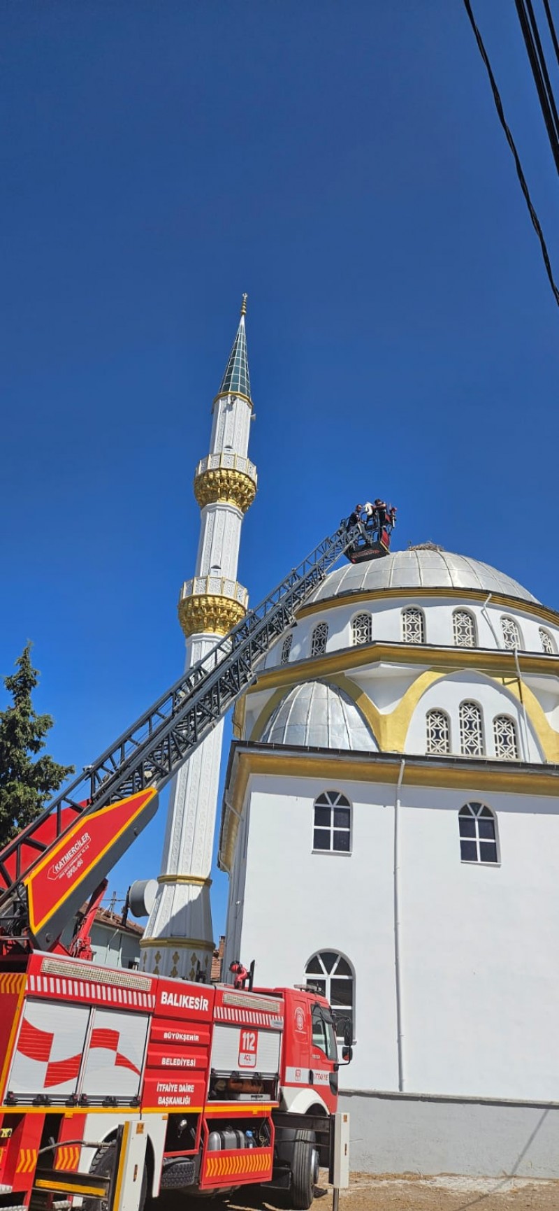 Karesi İlçesi Kavaklı Mahallesi Camisi’nin kubbesinde yuvasında bacağına ip dolanarak yaralanan ve uçamayan leylek, Balıkesir Büyükşehir Belediyesi ekiplerinin hızlı ve titiz müdahalesi sonucu kurtarıldı. Yaralı leylek, yapılan ilk müdahalenin ardından Milli Parklar ekibine teslim edildi.