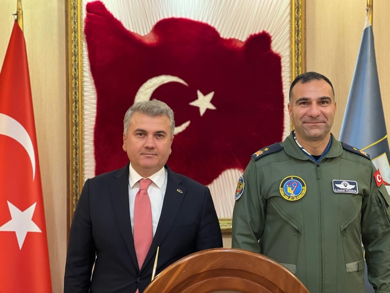 Daha sonra 9. Ana Jet Üs Komutanı Hava Pilot Tuğgeneral Cihangir Kemal Yüzçelik’i makamında ziyaret etti.