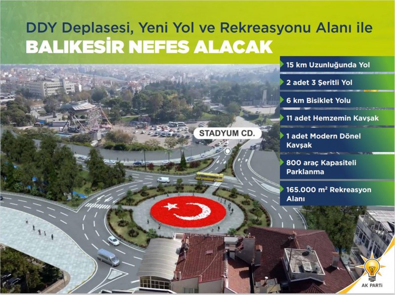 “Söz Uçar Eser Kalır Projeler Hazır” diyerek 2024 - 2029 Şehir Yönetim Manifestosu’nda hizmet hamlelerini açıklayan Balıkesir Büyükşehir Belediye Başkanı Yücel Yılmaz, ‘Tren Yolu Deplase ve Kent Park Meydan’ projesiyle tren yolunu yer altına alıp şehre yeni meydanlar ve dönel kavşaklar kazandıracağını söyledi. Proje; Altıeylül İlçesi Yakup Şevki Paşa Caddesi’nden başlayarak Yeni İzmir Yolu boyunca devam eden ve Karesi İlçesi Kepsut Caddesi’nde sona eren proje, yaklaşık 5 kilometre uzunluğunda bir alanı kapsıyor. Geliş-gidiş ve bağlantı yolları da hesaba katıldığında yaklaşık olarak 15 kilometreyi buluyor. Proje ile Balıkesir İl Merkezi’nde yer alan Yeni İzmir Caddesi’nde bulunan demiryolu hattının kaldırılarak mevcut karayolunun düzenlenmesi ve kaldırılan demiryolu alanının ise “Kent Parkı” olacak şekilde yeşil alan şeklinde kullanılması amaçlanıyor. Tasarlanan yeşil alan yaklaşık olarak 165 bin metrekare. 6 kilometre bisiklet yolunun da bulunduğu projede, 800 araç kapasiteli parklanma alanı da yer alıyor.