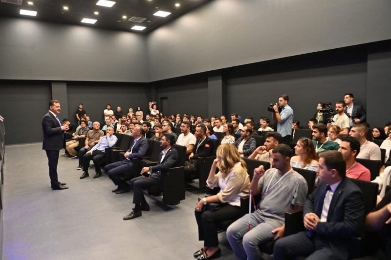 Cumhuriyet’in 100, yılına özel olarak hayata geçirilen Dijital Gençlik Kampı’nda 100 pırıl pırıl gençle bir araya gelmekten duydukları memnuniyeti dile getiren Türkiye Belediyeler Birliği Başkanı ve Balıkesir Büyükşehir Belediye Başkanı Yücel Yılmaz “Balıkesir’imizde gerçekleştirilen Dijital Gençlik Kampı, inşallah sizde olumlu şekilde iz bırakır, güzel anılarla buradan ayrılırsınız. Ne iş yaparsanız yapın, iyi yapmaya özen gösterirseniz hayatınızı değiştirecek birisi mutlaka size denk gelir ve sizi parlatır.” ifadelerini kullandı. (Balıkesir Büyükşehir Belediyesi)