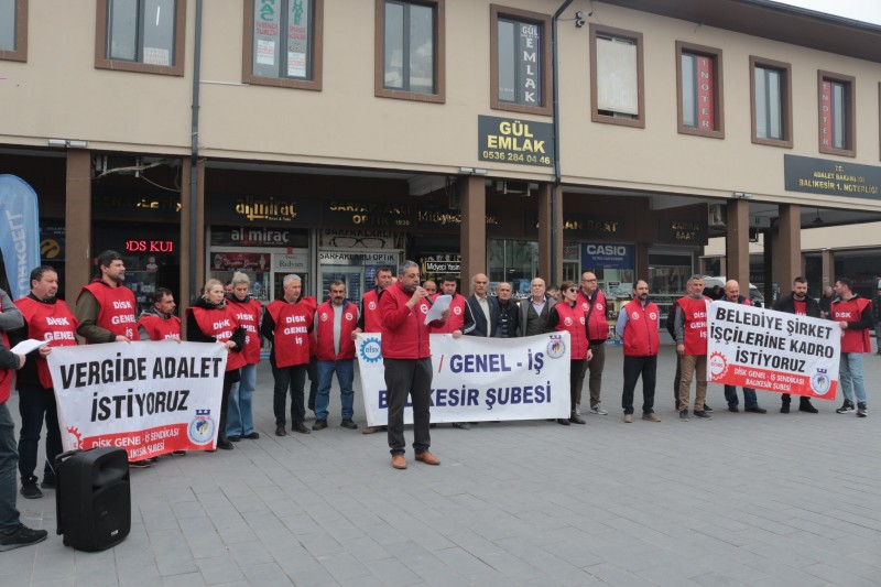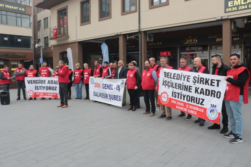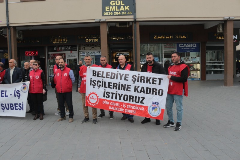 DİSK'e bağlı Genel-İş Sendikası Balıkesir Şube Başkanı Hüseyin Ovalı, Ali Hikmet Paşa Meydanı'nda düzenlediği basın açıklamasında belediye şirket işçilerinin kadro talebini bir kez daha gündeme getirdi.