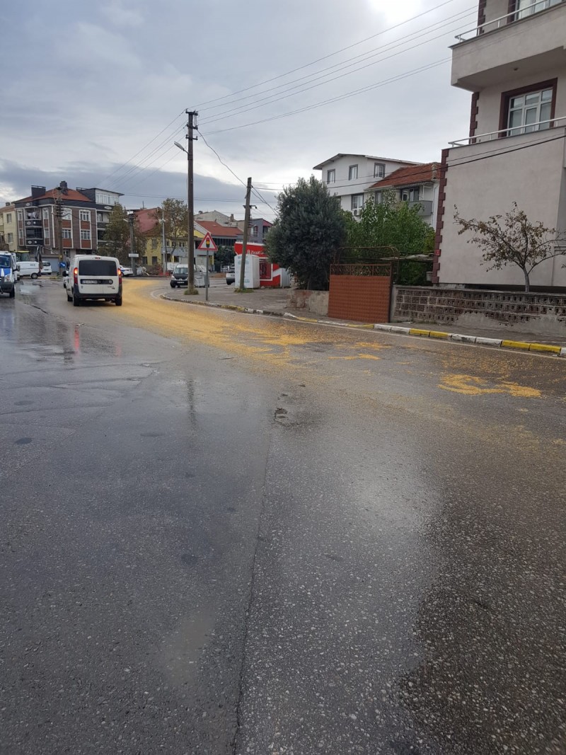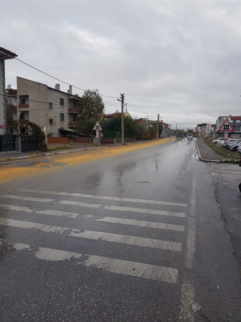 Balıkesir’in Altıeylül ilçesi 2. Gündoğan Mahallesi Atalay Caddesi ve 205. Sokakta yaşanan olayda, tır cadde bulunan tiren raylarından geçiş yaptığı esnada gevşek kalan dorse kapağı açıldı ve içerisinde bulunan buğday dorseden dökülmeye başladı. Dorse kapağının açıldığını ve yükünün boşaldığını fark etmeyen tır sürücüsü yoluna devam etti. Çevredeki vatandaşların tır şoförünü uyarması sonunda tır durdurulabildi. Dorse kapağı kapatılıncaya kadarki süreçte buğday cadde üzerine boşalmaya devam etti. Olay yerine çağrılan kepçe ile temizlik çalışmaları başlatıldı. Cadde de kısa süreli trafik aksadı. (Ebru Erdem)