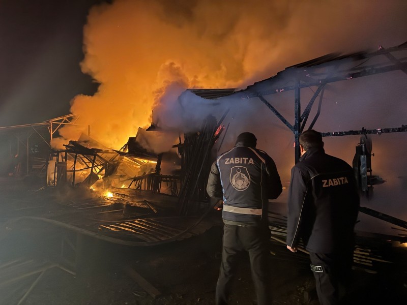 Balıkesir'in Dursunbey ilçesinde kereste deposunda yangın çıktı. İtfaiye, Orman ve belediye ekiplerinin müdahalesiyle yangın söndürüldü.
