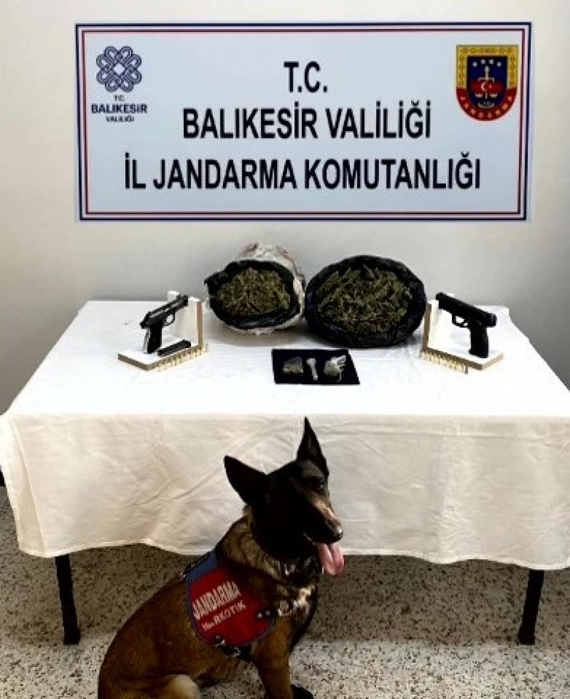 Edinilen bilgiye göre, Balıkesir İl Jandarma Komutanlığınca, uyuşturucu madde imal ve ticaretine yönelik yapılan istihbari çalışmalar neticesinde, Edremit ilçesinde uyuşturucu madde imal ve ticareti suçu işlediği tespit edilen şüphelilere operasyon düzenlendi. Şahıslara ait araçta narkotik köpeği ile yapılan aramada; 2 bin 300 gram kubar esrar, 3 adet sentetik uyuşturucu hap, 1 adet uyuşturucu kullanma aparatı (payp), 2 adet tabanca ve 22 adet tabanca fişeği ele geçirildi. Olaya karışan 3 şüpheli yakalanarak haklarında adli işlem başlatıldı.