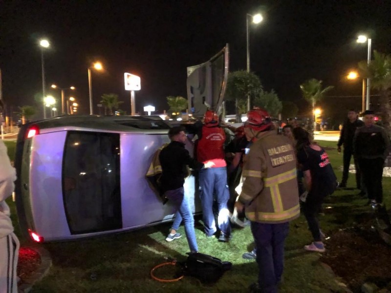 Edremit ilçesinde B.T. yönetimindeki 34 BR 9809 plakalı otomobil, sürücünün direksiyon hakimiyetini kaybederek Zeytinli kavşağında refüje çarparak devrildi.